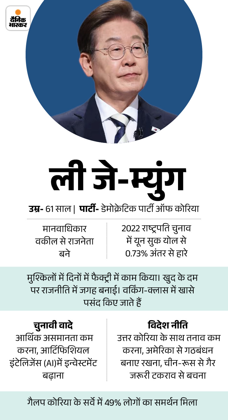 साउथ कोरिया के राष्ट्रपति चुनाव में लिबरल पार्टी की जीत:  नए राष्ट्रपति बनेंगे ली जे म्युंग; विपक्षी उम्मीदवार ने हार स्वीकार की