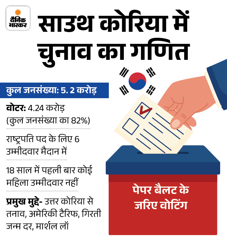 • दक्षिण कोरिया में 4.24 करोड़ वोटर्स है, जो देश कि कुल आबादी का 82% है। इनमें से 50.5% महिलाएं हैं।