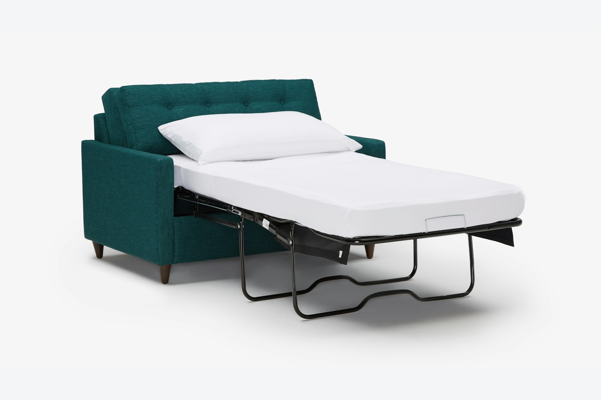 Technically a sleeper chair, the Marina from Article earns a place on this list thanks to its clever design. It unfolds into a memory-foam mattress and requires zero assembly.