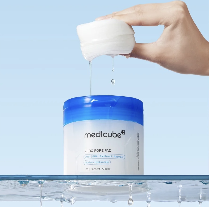 Once the skin is clean, attention shifts to refining texture. The Zero Pore Pad 2.0 features a dual-textured design that gently exfoliates while delivering active ingredients into the skin.