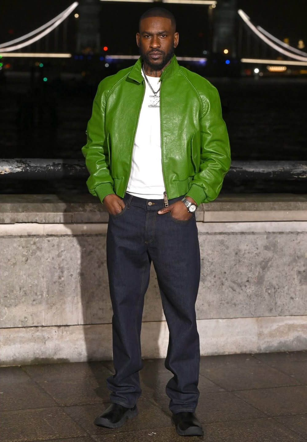 Meanwhile, at the BRIT Awards, Skepta delivered a sharp and elevated statement in a full look from Mains London, seamlessly merging luxury streetwear with tailored sophistication. He wore a monogrammed brown jacket layered over a crisp white shirt, striking a compelling balance between bold branding and classic restraint. The structured outerwear was paired with wide-leg tailored trousers in a deep charcoal tone, creating a clean, elongated silhouette that felt both modern and intentional. Gold jewelry added personality and dimension, injecting Skepta’s signature edge into the polished framework. Sleek black leather shoes grounded the look, while a matching monogrammed bag reinforced the cohesive aesthetic. Ultimately, the ensemble felt like a confident fusion of contemporary British tailoring and Skepta’s unmistakable street-influenced style.