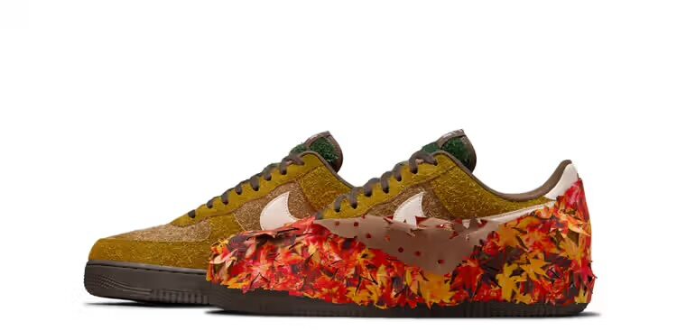That shift is fully realized here. Without the crutch of a big-name co-sign, the Air Force 1 “Autumn Leaves” lets its materials and concept speak for themselves. It’s daring by design, inviting wearers to weave their own narrative—whether they’re crunching through leaves in Central Park or dressing for a lazy outdoor brunch.