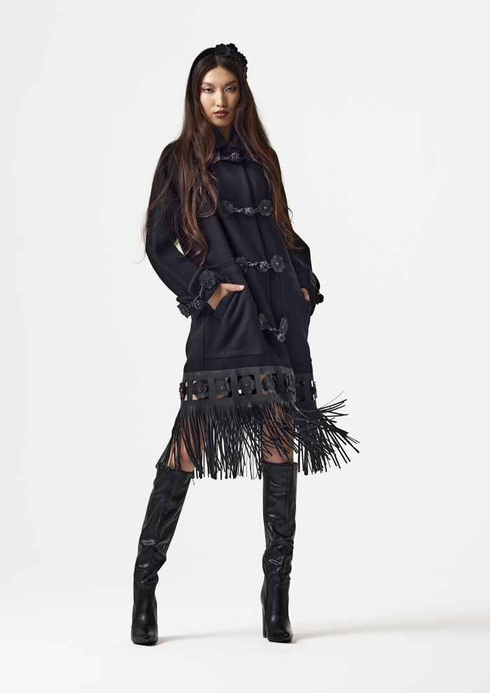 Architectural silhouettes, sculpted volumes in leather and silk, and a predominantly black palette defined a confident elegance. A handcrafted leather anemone emerged as a signature motif, symbolizing resilience, rebirth, and quiet strength.